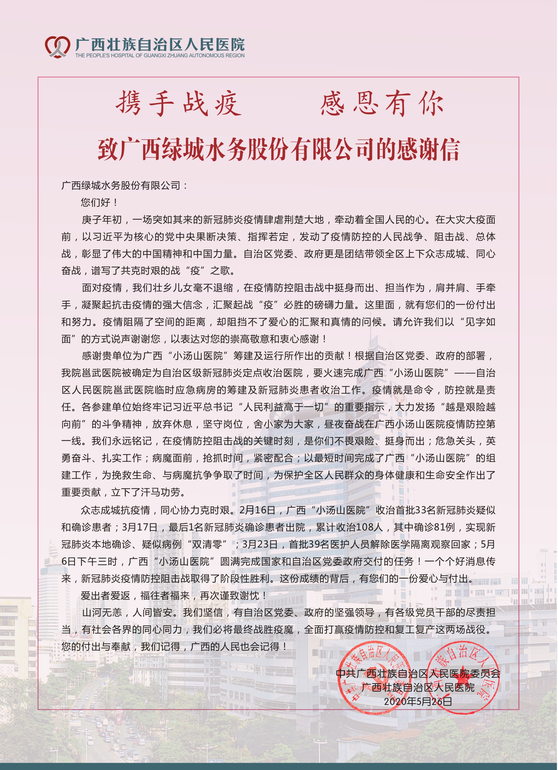 (圖為自治區(qū)人民醫(yī)院發(fā)來的感謝信)